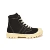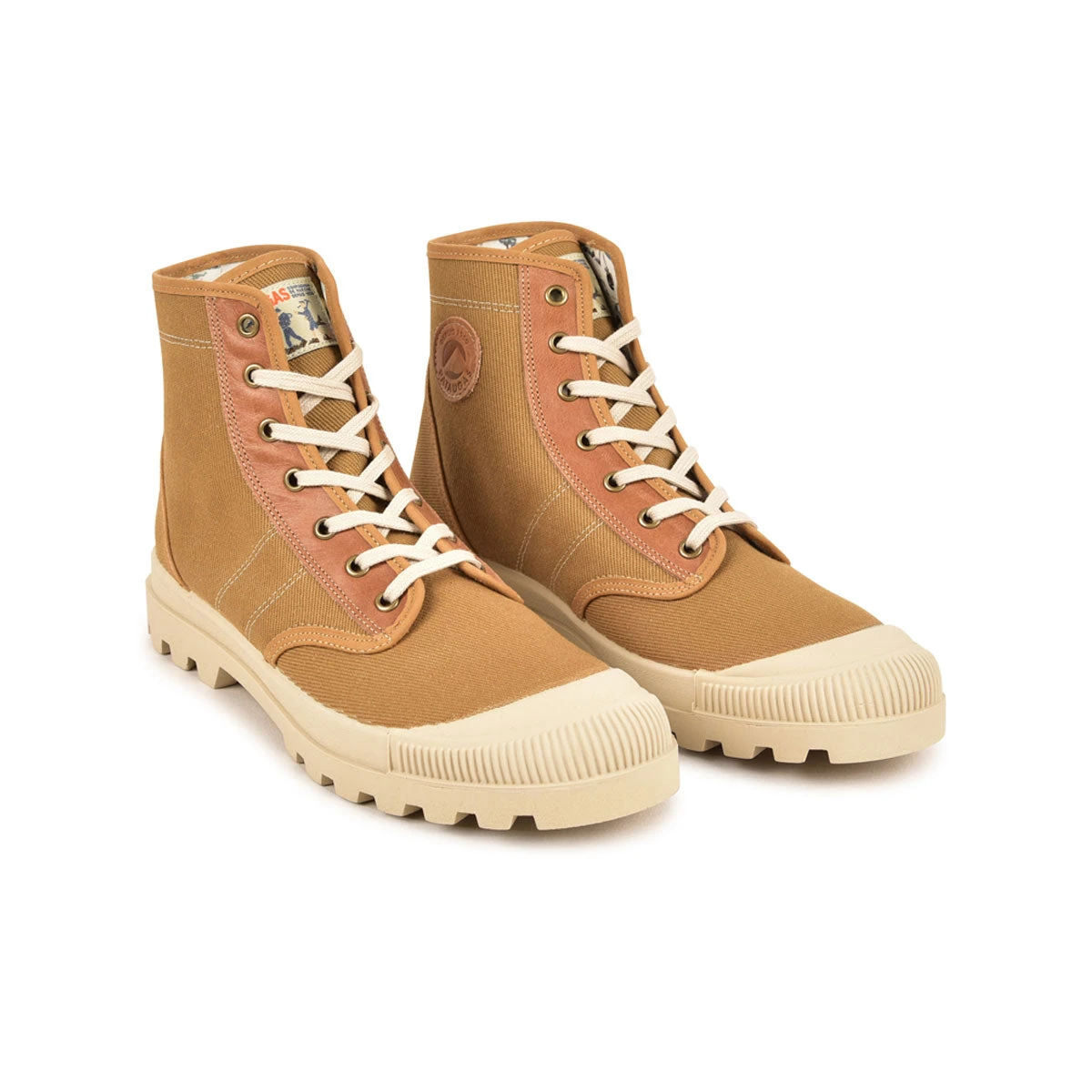 Nouveauté de la saison notre Authentique revient avec une édition limitée issue de notre capsule estivale SCOUT et directement inspirée par l’histoire de Pataugas. La doublure accueille un motif exclusif relatant l’aventure des 3 Etche tandis que la tige, en toile manufacturée en Angleterre depuis 1880, utilisée sur les vêtements de travail et la haute couture pour sa qualité, sa résistance et son haut pouvoir déperlant British Millerains, est conçue pour vous maintenir les pieds au sec, par tous les temps et par tous les chemins.