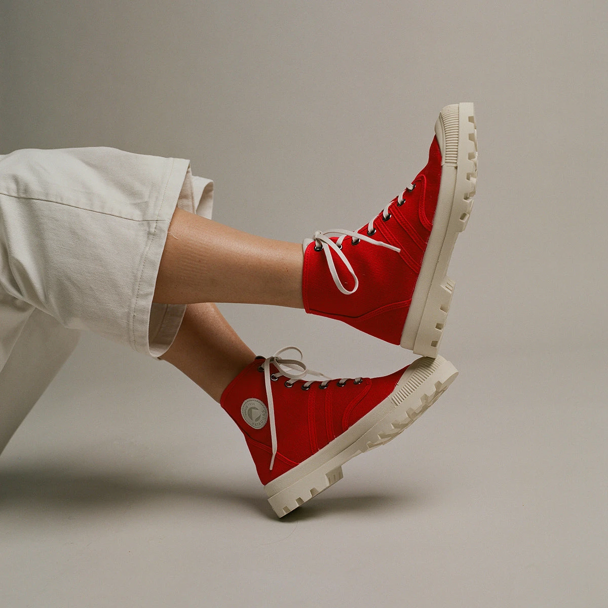 Notre iconique boots Authentique revient cette saison sur le devant de la scène. Notre brodequin de marche traditionnel est muni d’une tige rouge en coton bio et monté sur une semelle ultra-souple en caoutchouc naturel. C’est une boots en toile idéale pour la mi-saison et pour marcher aussi bien en ville qu’à la campagne.