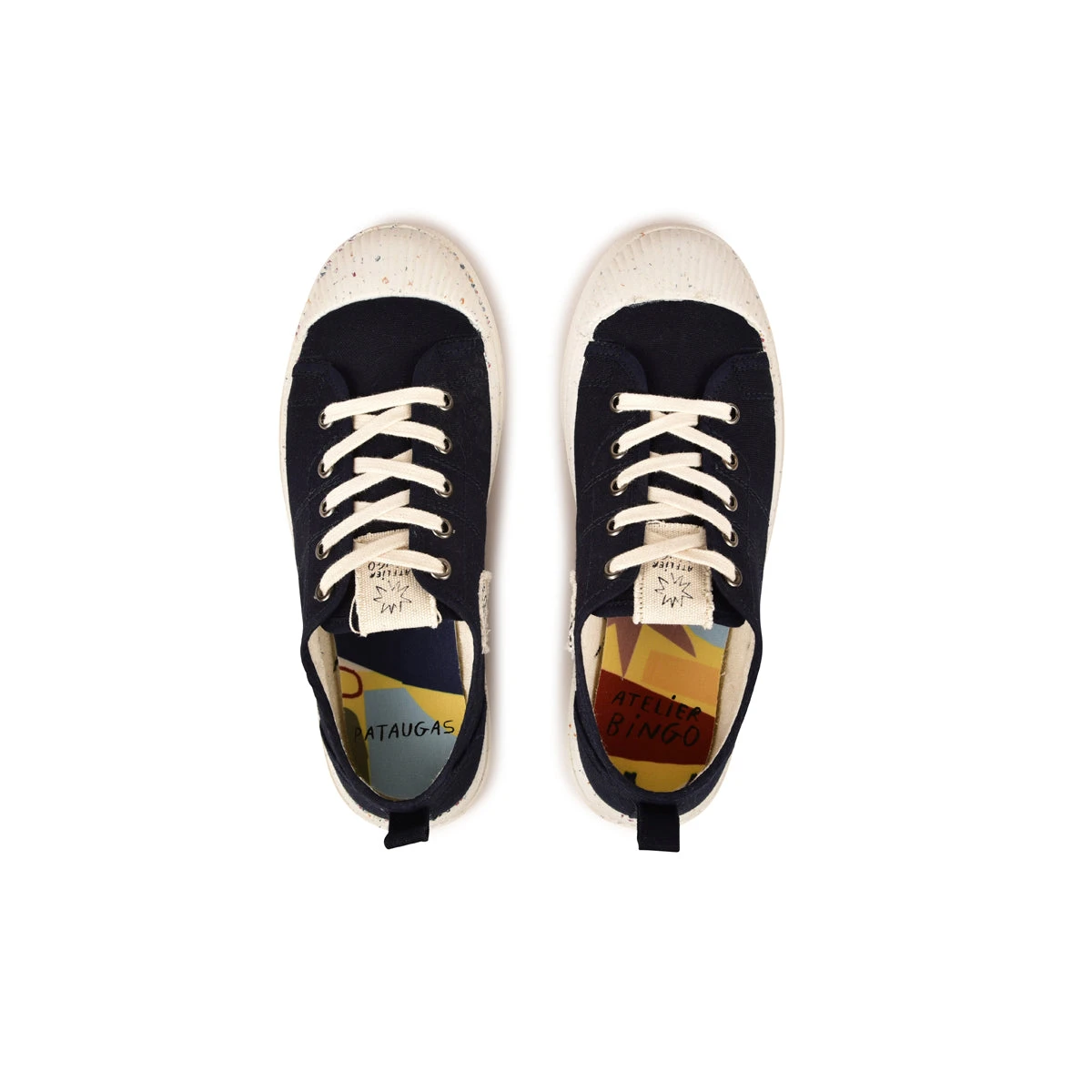 Craquez pour la basket femme ETCHE qui se pare d’une toile bleu marine robuste et légère. Cette chaussure est montée sur une semelle blanche épaisse. Sa semelle intérieure est amovible ce qui est très pratique si vous souhaitez placer vos propres semelles.