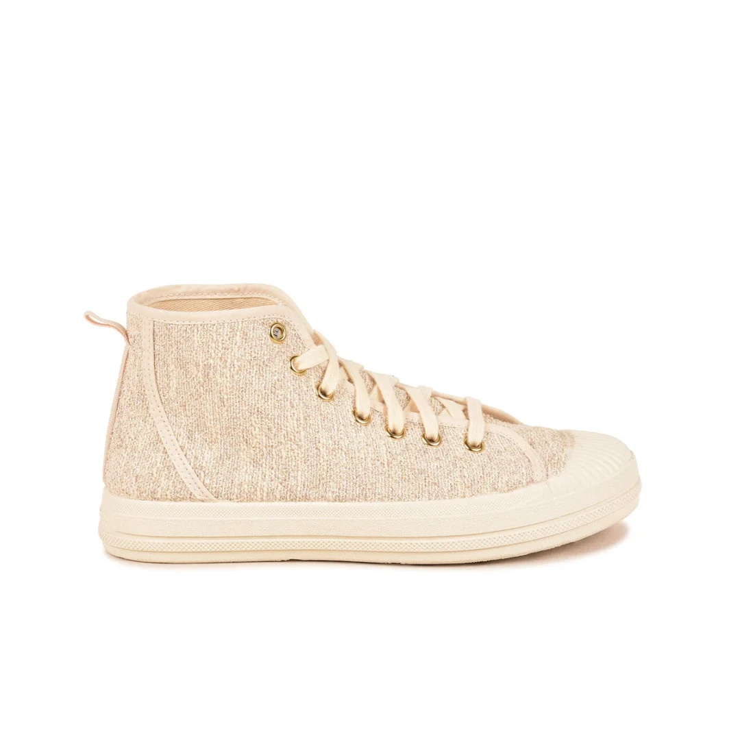 La basket femme ETCHE revient cette saison avec un tout nouveau tissus bouclette raffiné tissé en Espagne, inspiré des codes du design et de l’ameublement, le jeu de fils multicolore délicat apporte douceur et sophistication. Cette basket en coton recyclé est très tendance grâce à sa tige haute et sa semelle striée confortable et légère. C’est une basket montée sur une semelle en caoutchouc naturel ce qui lui permet d’être plus flexible et plus souple. Sa semelle intérieure est amovible ce qui est très pratique si vous souhaitez y placer les vôtres.